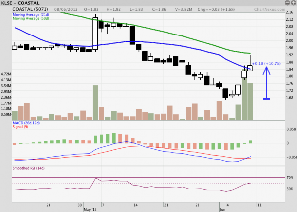 Coastal ni saya dah lama perhatikan sejak minggu lepas lagi. Kes sama seperti entri mega sale saya, saham dia tengah murah.