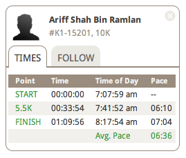 Sebenarnya, beberapa hari sebelum ini saya mengalami sedikit kecederaan ringan pada kaki sebab training terus sangat. Yelah, bila dah lama tak train dan bila sedar event day dah dekat, memang bersungguh-sungguh la training untuk ganti balik hari yang tertinggal training. Memang saya ragu-ragu samada dapat habiskan ke tak larian dengan masa yang tak corot sangat. Takut jugak kalau masa lari nanti tiba-tiba kaki kejang sampai kena angkut naik ambulans.