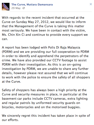 Kalau di parking Curve Mutiara Damansara boleh berlaku dengan adanya CCTV dan guard. Apatah lagi keselamatan kita di tempat lain…cuma peringatan sesama kita.