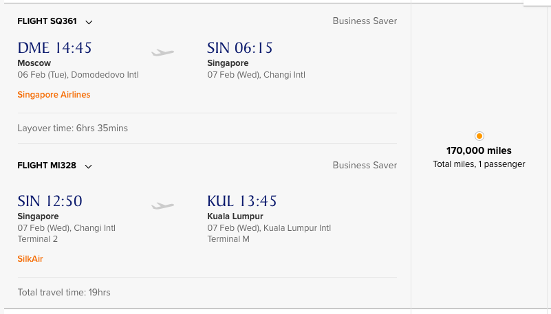 Partner airlines redemption costs more, in my case 10,000 Krisflyer points more than redemption on SQ. Good option for those who really want business class on a particular date and wouldn’t mind flying on any airline.