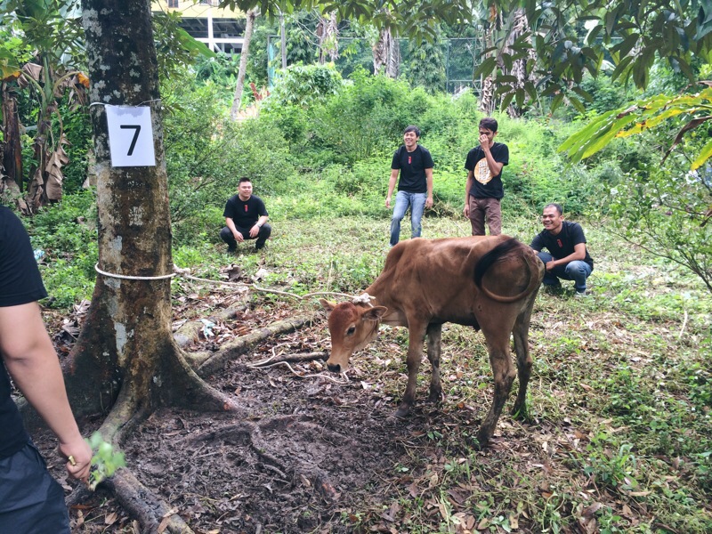Mengatur strategi untuk menumbangkan lembu ni. Kalau nasib tak baik, silap-silap boleh kena terajang dengan lembu.