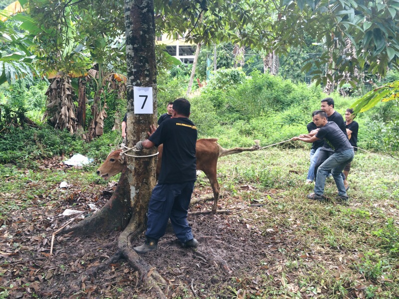 Kuncinya adalah untuk menjerat kedua-dua belah kaki belakang lembu. Tapi kalau tak dapat dua belah, sebelah pun jadilah. Cuma susah sikit nak tarik.